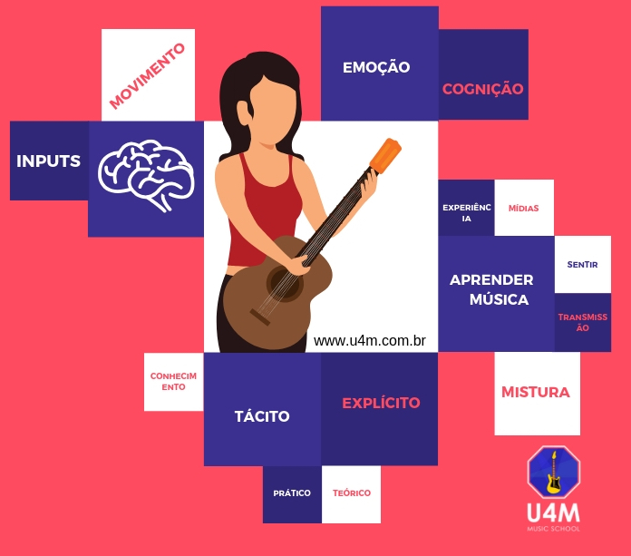 O estudo teórico (explícito) e prático (tácito) de um instrumento musical proporciona desenvolvimento de competências e habilidades pessoais e a capacidade de decodificar signos, aguçando a inteligência em sua característica central de resolver problemas. Estas ações, intimamente ligadas às emoções, aprimoram a sensibilidade, promovem a criatividade e ampliam o horizonte de percepções a respeito da realidade subjetiva (interna) e objetiva (externa) de uma pessoa, portanto propiciam aprendizagem e desenvolvimento humano.